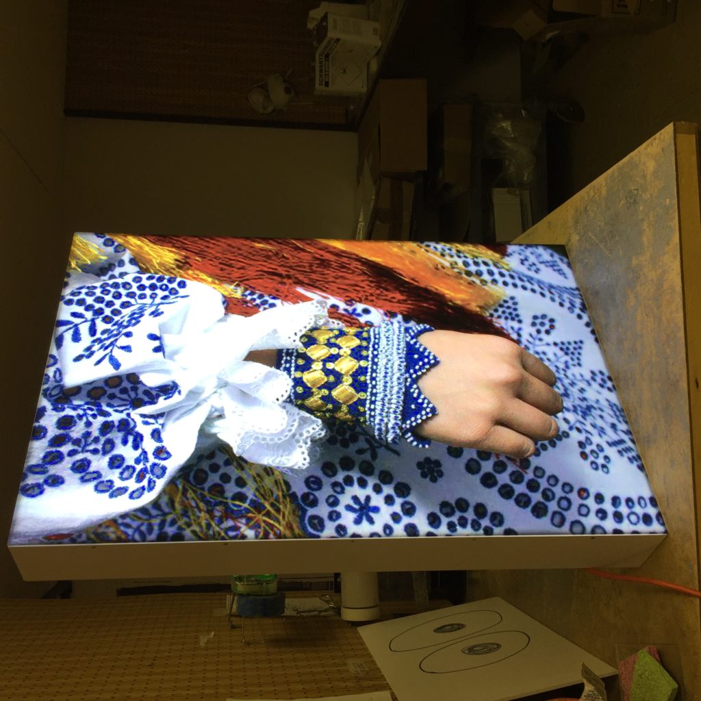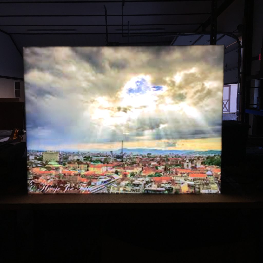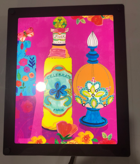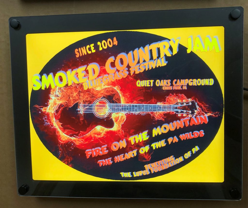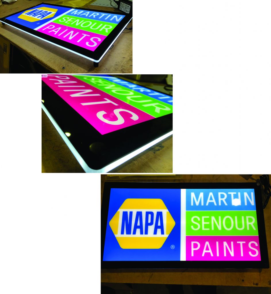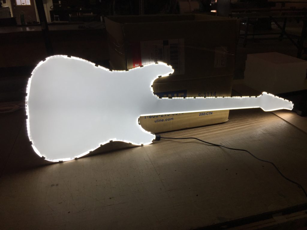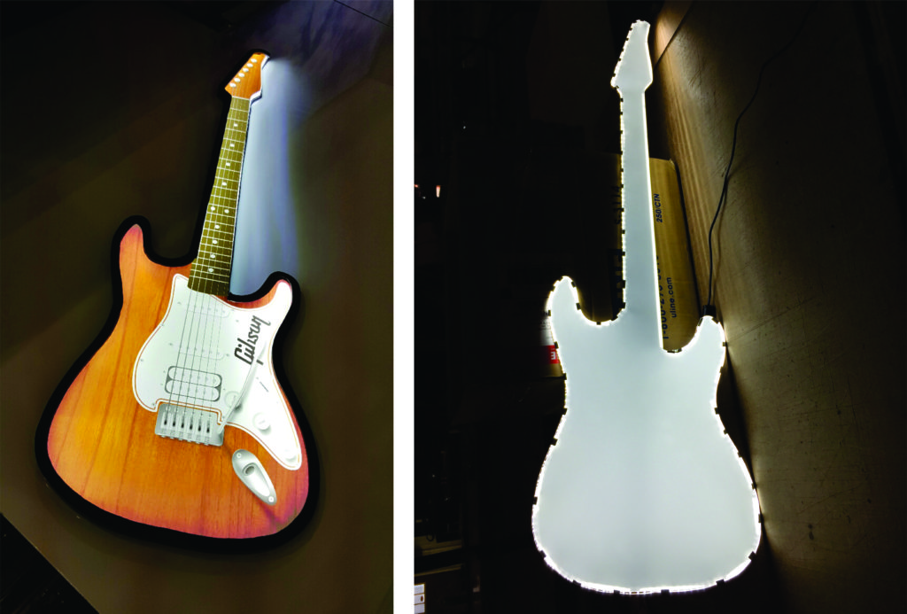 Laser cut guitar light guide assembly used for creative signage – Before and after