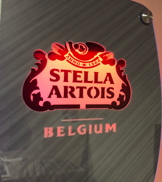Custom shaped acrylic LED liquor rack for Binghamton restaurant
